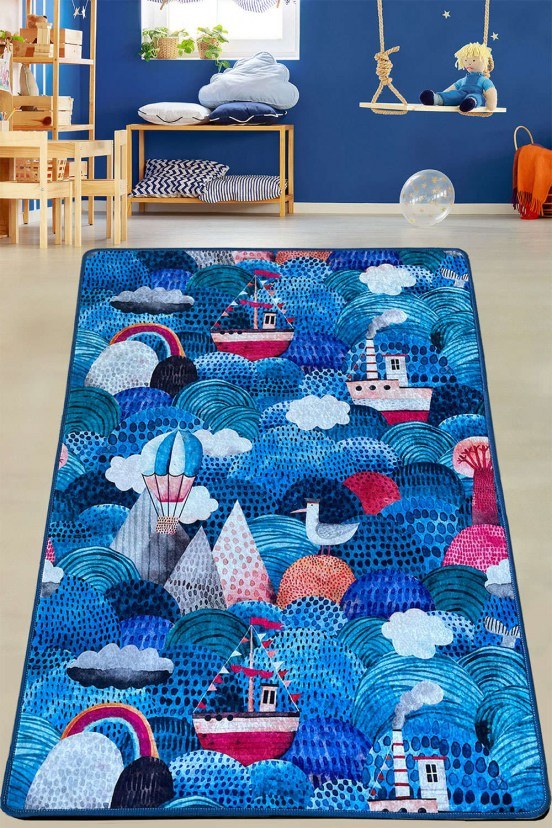 The Superior Carpet is inspired by the beauty of the sea, as it features a playful design with high waves and cute boats. Made of 100% polyester, this rug not only adds warmth and a welcoming atmosphere to your space, but also enhances its aesthetics with its stunning digital print. With a pile height of 10 mm, the rug offers a soft and comfortable surface ideal for everyday use. Its antibacterial properties ensure a clean and hygienic environment, which makes it ideal for areas with children or pets. The non-slip PVC base provides excellent stability, preventing any slips and ensuring safety in your space. The carpet's enchanting digital print gives a special elegance and style to your space.