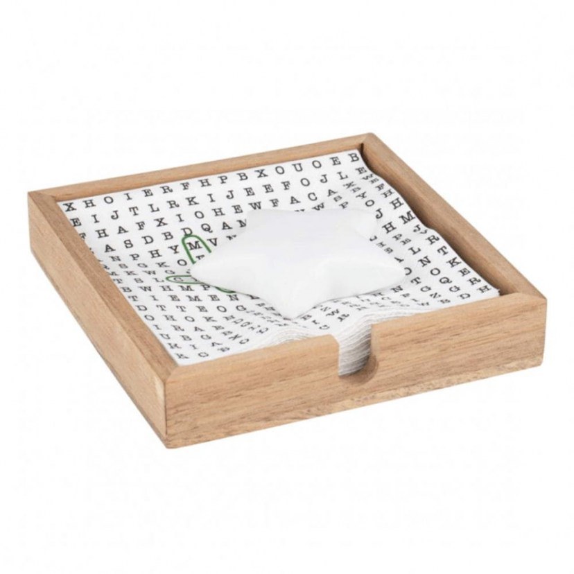 The Star RD0090454 Napkin Holder is an excellent choice for those looking for modern accessories for their dining table. It is made of untreated acacia wood and features a porcelain star that functions as a weight. It is ideal for use on festive occasions.
