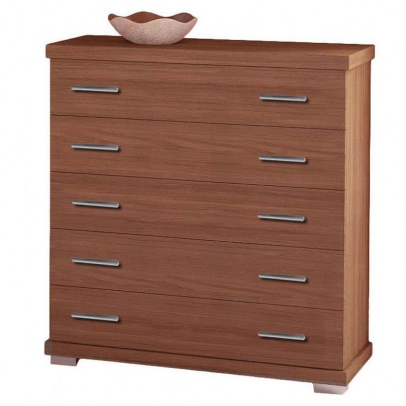 The No.5 Chest of Drawers is modern yet timeless, making it ideal for any type of decoration. It is made of melamine, which makes it durable and sturdy, and features metal knobs. It has five spacious drawers to store clothes, linens, or other small items. Combine it with a wardrobe from our collection and organize your space. The product is delivered assembled. Quality: Melamine Dimensions: Chest of Drawers: Length: 80cm, Width: 45cm, Height: 90cm.