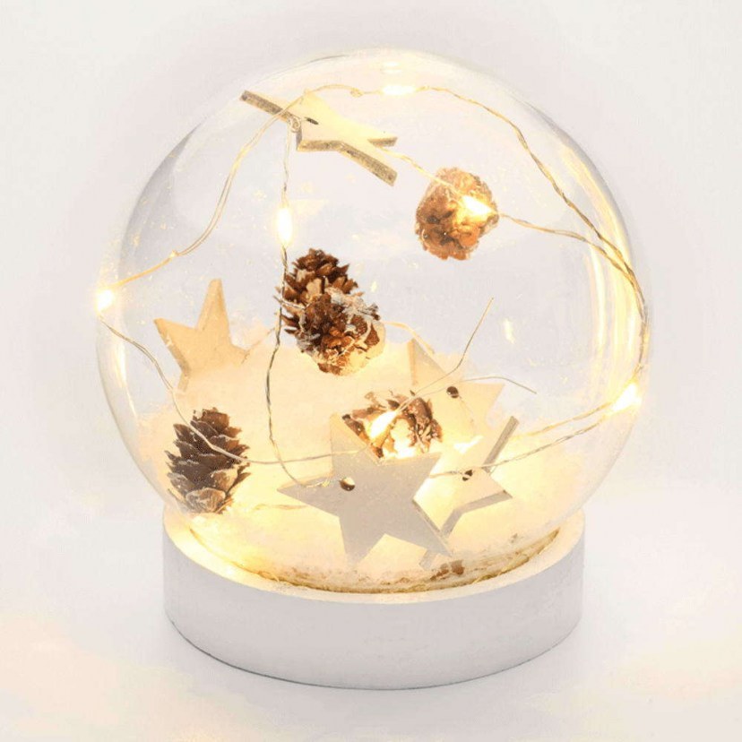 The Christmas Decorative Ball Stars X07101132 is inspired by our most beautiful childhood memories! It is a beautiful snowball, which features stars and pine cones inside and is illuminated with 10 LED lights with warm white light. It operates with 2 AAA/LR03 1.5V batteries, which are not included in the package. The lighting is steady and has an On/Off switch. Characteristics: Power: 0.6W Light Color: Warm White Number of bulbs: 10 mini LEDs Characteristics for 1 LED bulb: 3V/15mA/0.06W Waterproof rating: IP20 Dimensions: Diameter: 12 cm Quality: Glass
