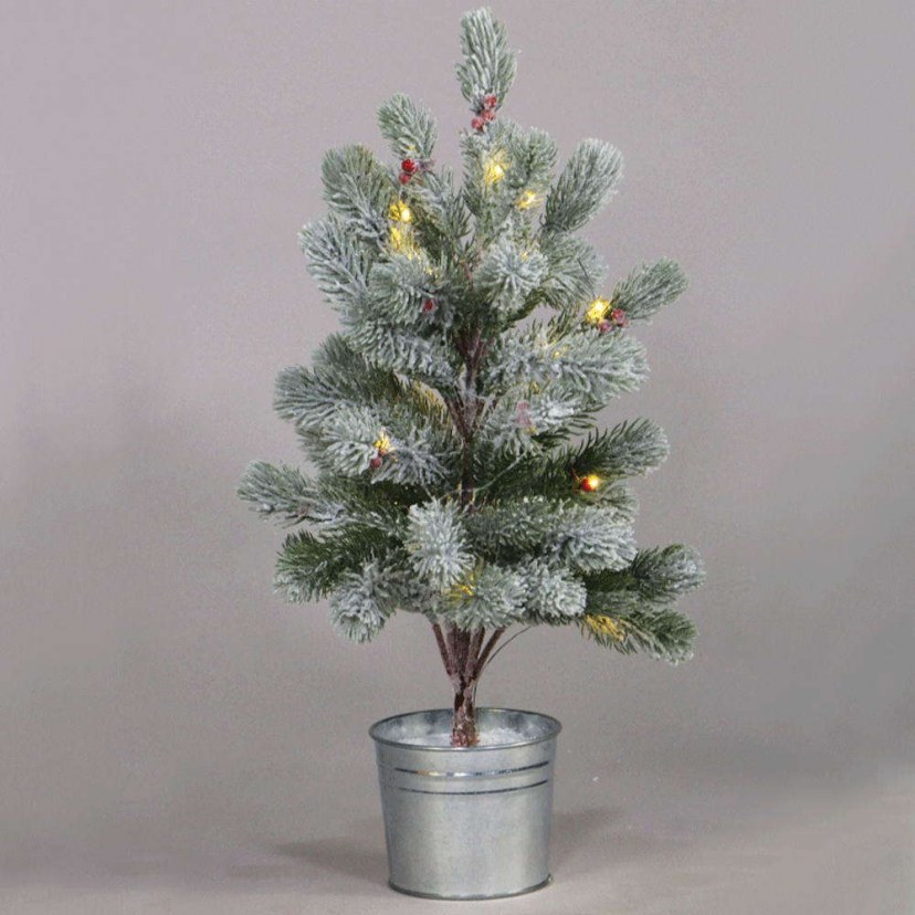 The Christmas Tree Led X1028114 is a perfect decorative addition for both residential and commercial spaces! It is a classic tree with snow-covered branches and a metal base. It has 28 LED lights with warm white light and operates with 3 AA/LR6 1.5V batteries, which are not included in the package.