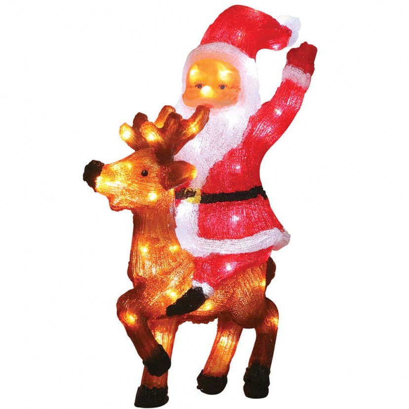Η Χριστουγεννιάτικη Διακοσμητική Φιγούρα Φωτιζόμενη Άγιος Βασίλης Με Ελάφι 223977 είναι μια εντυπωσιακή τρισδιάστατη φιγούρα κατασκευασμένη από ανθεκτικό ακρυλικό υλικό και φωτιζόμενη με 60 LED, που προσφέρουν ζεστή και λαμπερή παρουσία. Ο φωτισμός τροφοδοτείται μέσω μετασχηματιστή με προστασία IP44, καθιστώντας την ασφαλή για εσωτερική και εξωτερική χρήση. Ο Άγιος Βασίλης συνοδεύεται από το ελάφι του, δημιουργώντας μια γιορτινή, παιχνιδιάρικη σκηνή που αναδεικνύει τη μαγεία των Χριστουγέννων, ενώ οι λεπτομέρειες της φιγούρας προσδίδουν παραδοσιακή ζεστασιά και στυλ.