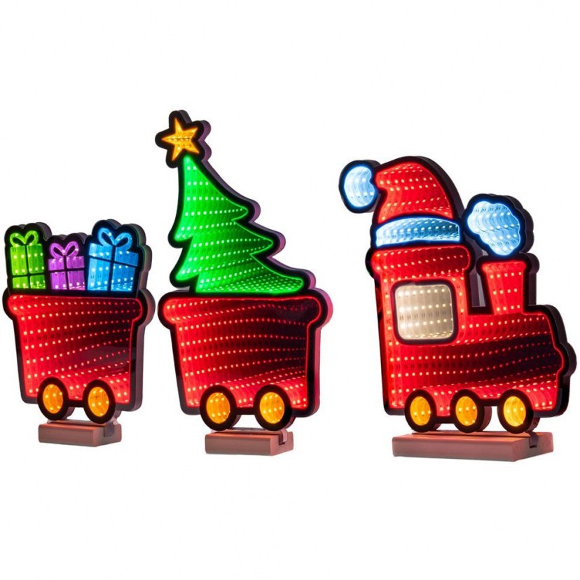 Δώστε ζωντάνια και μαγεία στις γιορτές σας με τη Χριστουγεννιάτικη Διακοσμητική Φωτιζόμενη Φιγούρα Infinity Light Τρενάκι 85878. Αποτελείται από τρία τεμάχια που στέκονται σε ξύλινες βάσεις και σχηματίζουν ένα φωτιζόμενο τρενάκι διπλής όψης, δημιουργώντας εντυπωσιακό και παιχνιδιάρικο φωτισμό για το σαλόνι, την είσοδο ή τη βιτρίνα σας.
