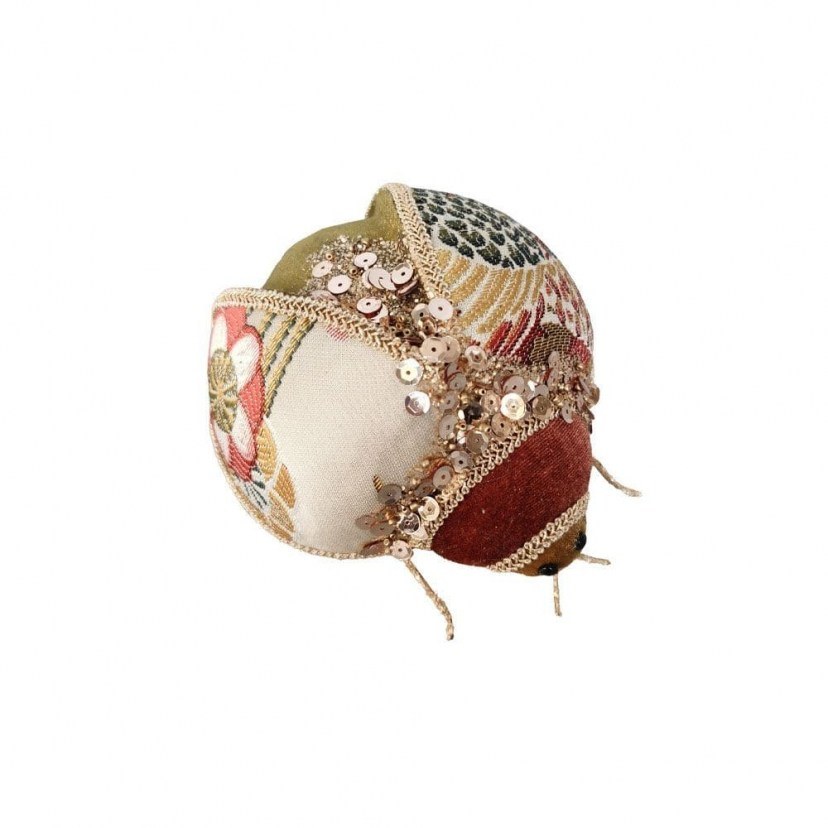 The Princess Brocade Christmas Figure C 030244 is a special decorative touch as it represents a cute insect and is perfect for adding a playful touch to your decor. Made of foam with a fabric lining, the figure is decorated with sparkling sequins that give it a festive glow.