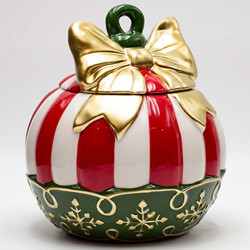 Η κεραμική Χριστουγεννιάτικη Μπισκοτιέρα Μπάλα Candy 600-47031, στις πιο χριστουγεννιάτικες αποχρώσεις, συνδυάζει πρακτικότητα και γιορτινό ύφος. Με εντυπωσιακό φιόγκο και λαμπερές λεπτομέρειες τραβά τα βλέμματα μικρών και μεγάλων. Το καπάκι ανοίγει εύκολα, προσφέροντας χώρο για μπισκότα, γλυκίσματα ή μικροαντικείμενα. Ιδανική για να φυλάξετε λιχουδιές, προκαλώντας μικρές στιγμές χαράς κάθε φορά που την ανοίγετε!