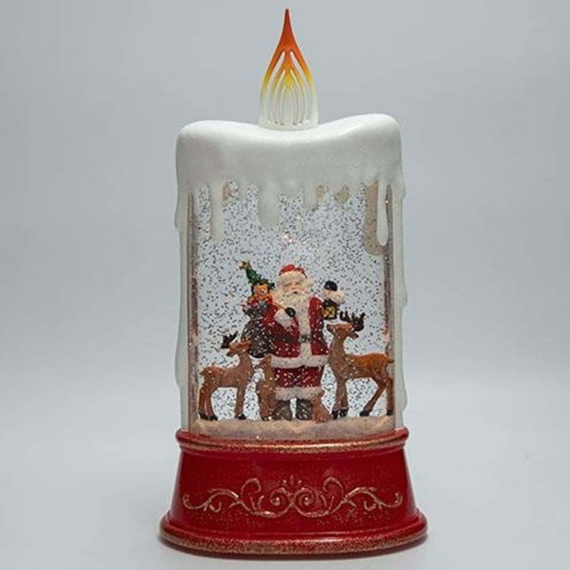 Κάντε δική σας τη Χριστουγεννιάτικη Φωτιζόμενη Παράσταση Σε Σχήμα Κεριού 600-48148 και να είστε σίγουροι πως θα απογειώσει το εορταστικό ντεκόρ σας. Με τον Άγιο Βασίλη και τα ελάφια στο εσωτερικό με το νερό, δημιουργεί εντυπωσιακό εφέ όταν φωτίζεται με warm white LED. Διαθέτει λειτουργία timer και είναι ιδανικό για να στολίσει το σαλόνι, το γραφείο ή τη βιτρίνα, προσφέροντας ζεστή γιορτινή ατμόσφαιρα. Λειτουργεί με 3 μπαταρίες AA (δεν περιλαμβάνονται).