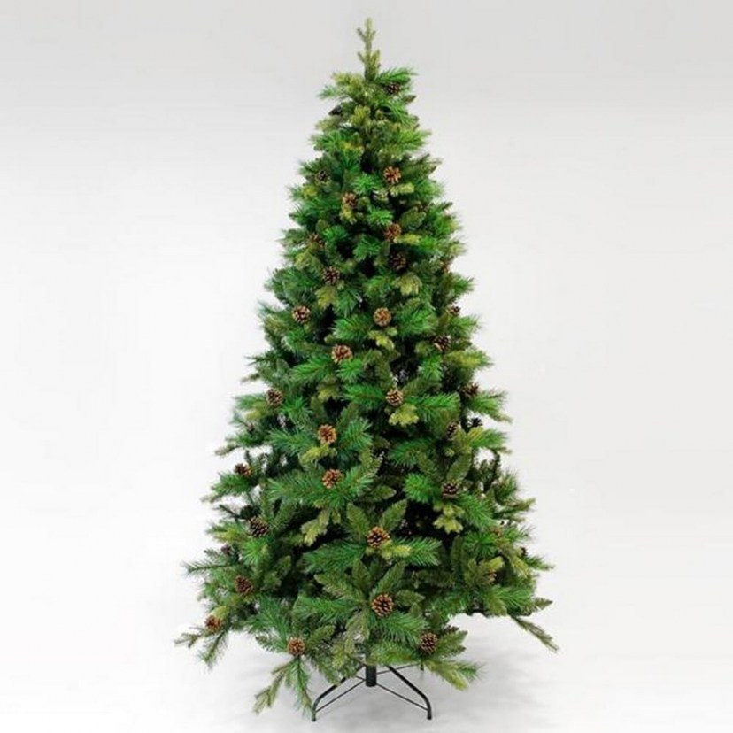 The Christmas Tree With Pine Needle & Pine cone 600-30155 features a realistic design that combines natural textures and details such as decorative pine cones and pine needles. It consists of 866 PVC and 274 plastic twigs and is easy to assemble. Its base is metal.