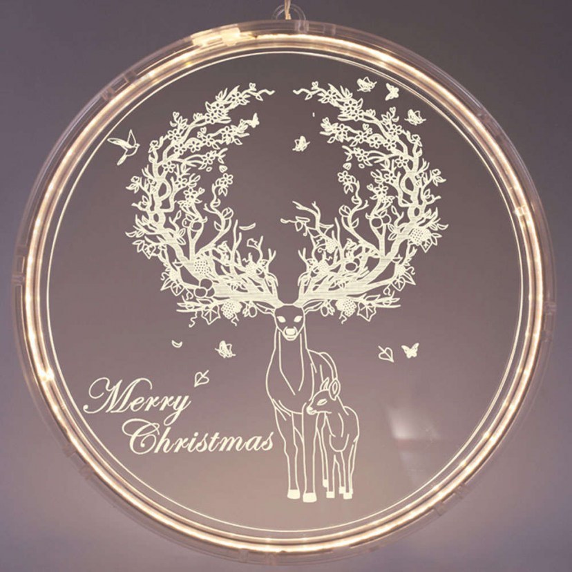 The Christmas Reindeer Hanging Ornament X08241254 is an elegant and eye-catching ornament made of transparent material, with an illuminated design depicting two reindeer and the message "Merry Christmas." The lamp has a warm white LED light and offers a power of 1 W. It is powered by a USB plug and has a transparent cable, which makes it even more discreet and elegant. Each LED features 3V/ 5mA/ 0.015W with 2835 size, offering stable operation.