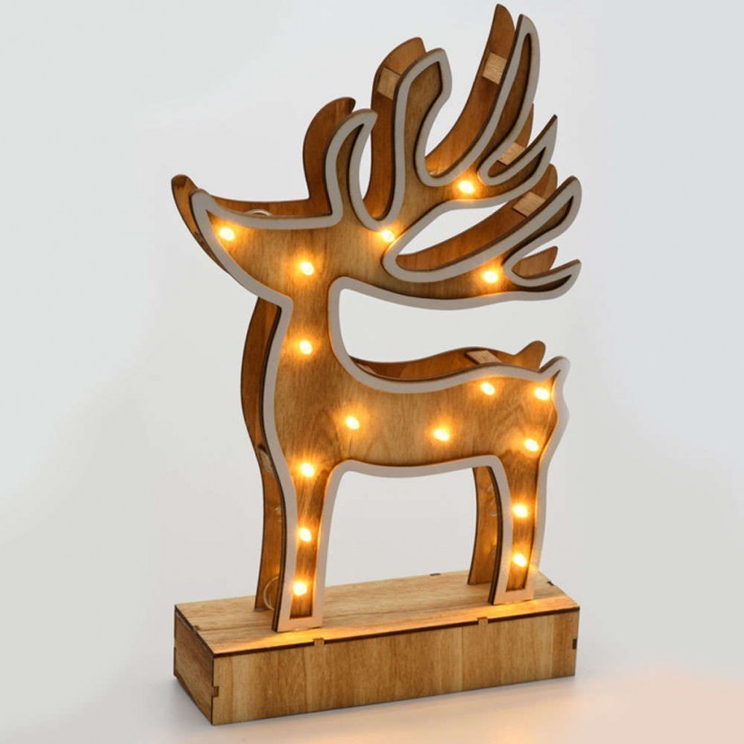 The Christmas Decoration Reindeer Led XDEERWW333A is a wonderful decorative item that will add a festive glow to your space. This tabletop decoration is made of wood and features 16 LED lights that emit warm white light. The LED lights create a bright atmosphere and can create a magical and charming environment during Christmas. They operate on 2 AAA/LR03 1.5V batteries, which are not included in the package. The lighting is steady and has an On/Off switch.