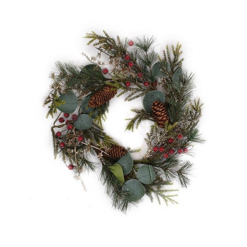 Το Χριστουγεννιάτικο Στεφάνι 372-223-124 είναι κατασκευασμένο από PVC, όμως αποπνέει την αίσθηση ενός διακοσμητικού που είναι κατασκευασμένο από φυσικά υλικά, καθιστώντας το ιδανικό για να φέρει μια ζεστή και γιορτινή διάθεση σε οποιονδήποτε χώρο του σπιτιού σας. Το υπέροχο στεφάνι είναι διακοσμημένο με κουκουνάρια και κατακόκκινους καρπούς που διακοσμούν τα κλαδιά του προσθέτουν μια επιπλέον πινελιά παραδοσιακής ομορφιάς και χειμερινής μαγείας.