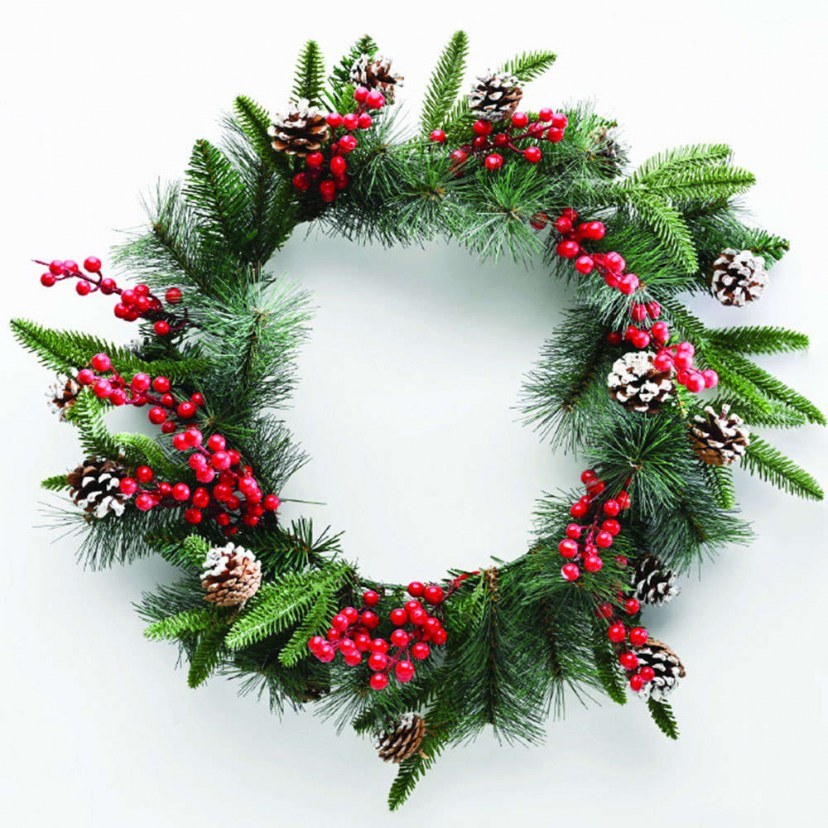Create a warm and festive atmosphere with the Christmas Wreath Berries & X165012 cocoons! This stunning wreath is filled with green artificial leaves, which add a natural and fresh feel, while red berries and beautiful pine cones give it a lively and festive touch. Perfect for decorating your entryway, door or anywhere that needs a festive touch, this wreath will delight your guests and provide a warm welcome to all.
