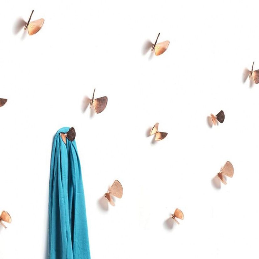 The Decorative Butterfly Set - Wall Hangers Bice MBI21 Mix Finishes is a set of 6 butterflies that are placed on the wall. They are designed by the famous Roberto Mora and made of copper. They are available in different sizes and finishes. They can be mounted on walls and used as decorations as well as hangers. Quality: Metal. Dimensions: 6 Butterflies: Length: 5 cm, Width: 4 cm, Height: 5 cm/Length: 8 cm, Width: 6 cm, Height: 8 cm.