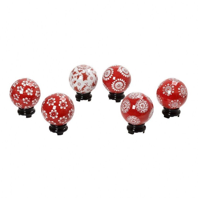 At designdrops you will find modern and unique decorations for your home and professional space. The Decorative Spheres Set Assort FEG305K6 is ideal for those who want something original and elegant. It consists of two porcelain spheres with different red and white designs. Quality: Porcelain. Dimensions: 1 Set of Spheres: 2 Spheres: Length: 4 cm, Width: 4 cm, Height: 4 cm.