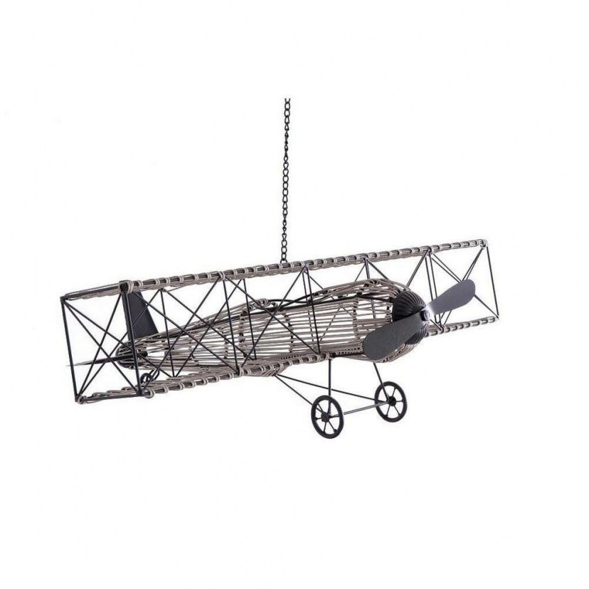 Elevate the design of your space by choosing the Decorative Airplane with Chain JUF204! It is a metal construction of a miniature airplane that you can hang using the chain it comes with. It can be yours easily and simply with just one click on designdrops! Quality: Metal. Dimensions: 1 Decorative piece: Length: 77.8 cm, Width: 69.9 cm, Height: 24.8 cm.