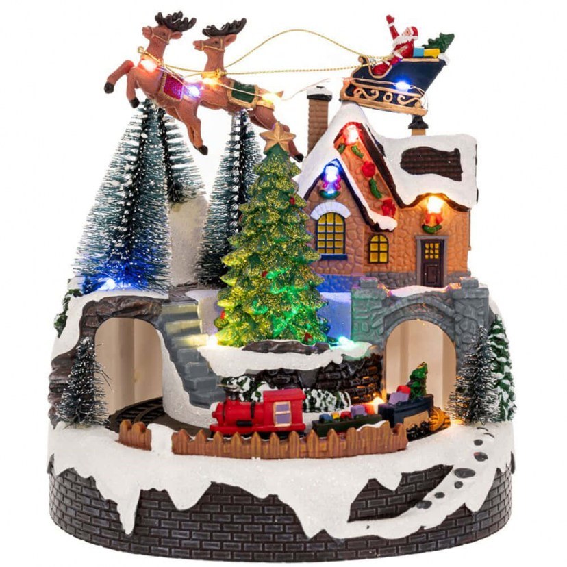 Δημιουργήστε μια μαγική χριστουγεννιάτικη ατμόσφαιρα με το Διακοσμητικό Χωριό Φωτιζόμενο με Κίνηση 90741. Το φωτιζόμενο σκηνικό περιλαμβάνει ένα σπιτάκι με χιονισμένα δέντρα και τρενάκι που κινείται γύρω γύρω, ενώ στο πάνω μέρος ο Άγιος Βασίλης με το έλκηθρο και τους ταράνδους προσθέτει γιορτινή μαγεία. Κατασκευασμένο από πολυρέζινη και πλαστικό, λειτουργεί με 3 μπαταρίες ΑΑ (δεν περιλαμβάνονται) και διαθέτει μουσική, φως και κίνηση.