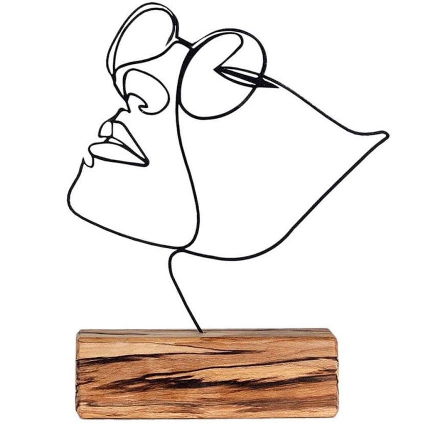 Table Decoration 533BSG1161 uniquely represents a beautiful face, formed with thin metal as if it were a sketch. The aesthetic effect takes off from the wooden base in a natural shade. Enhance your home decor with this exceptional decorative item, which uniquely combines metal and wood. Crafted with the utmost precision and attention to detail, this exquisite piece is designed to enhance the aesthetics of your space and lend an air of elegance and style. The combined use of metal and wood creates a harmonious balance, giving a special character to your space.