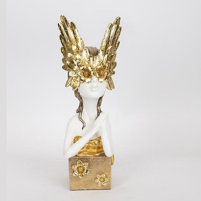 Looking for eye-catching decorations? Then the Decorative Sculpture Woman With Mask 752-27036 is ideal for you! It is a bust of a woman with an impressive mask. Its special design and rich color make it stand out.