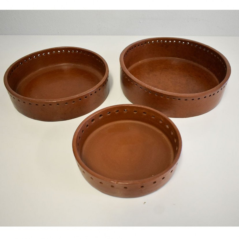 The set of JCG 423 decorative saucers includes three round saucers. This is a special decorative choice that will ensure a rustic look in your space. The saucers are made of clay and have a modern perforated design perimeter, for an even more elegant look! quality: