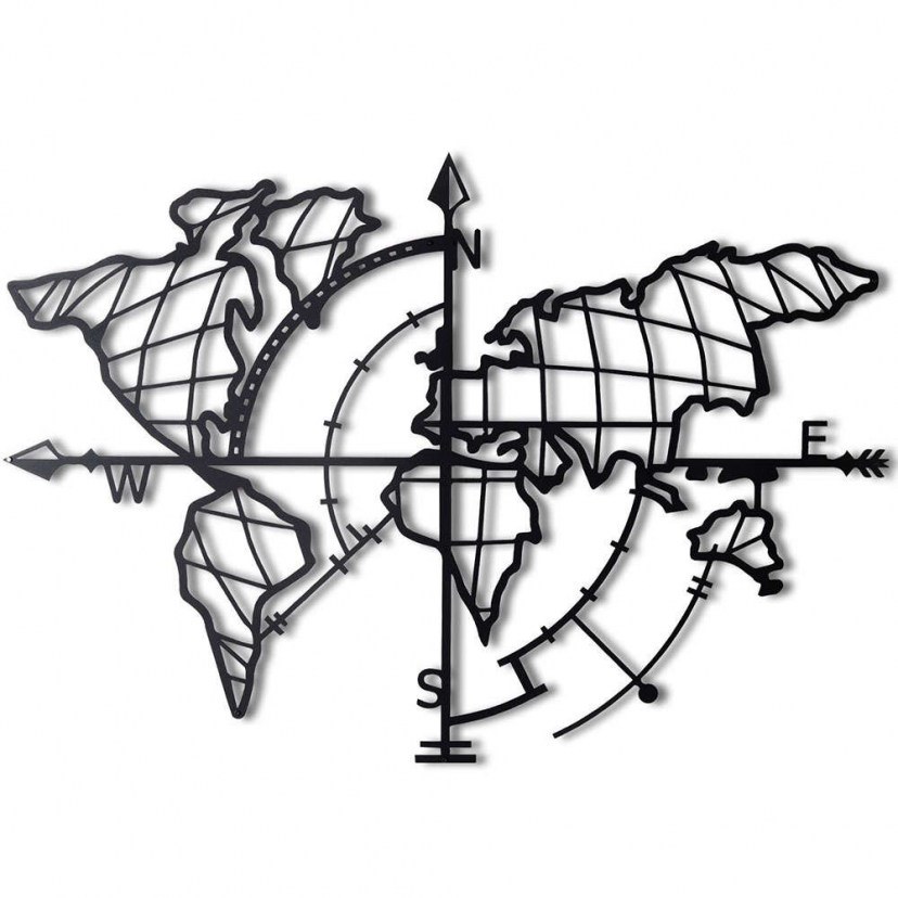 The World Map Compass Wall Decor 805BSG1136 is a stunning piece that represents a world map based on a compass. It is made of high quality metal. It features a perforated design, adding interest and originality to the piece. Made of high quality metal, which gives durability and longevity to the ornament. The dimensions of the piece provide an impressive presence on the wall. Quality: