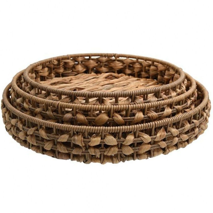 Το Σετ Διακοσμητικών Δίσκων Boho (3τμχ) 727-125-035 προσφέρει μια μοναδική φυσική αισθητική που φέρνει γήινη και οργανική αίσθηση στον χώρο σας, ιδανική για οικολογικές και φυσικές διακοσμήσεις. Κατασκευασμένο από φυσικά και ανακυκλώσιμα υλικά, αποτελεί μια φιλική προς το περιβάλλον επιλογή που συνδυάζει ανθεκτικότητα και κομψότητα. Η πολυλειτουργικότητα του σετ το καθιστά κατάλληλο τόσο για διακόσμηση τραπεζιών, όσο και για αποθήκευση μικρών αντικειμένων, ενώ αποτελεί ιδανική προσθήκη σε χώρους όπως ξενοδοχεία, spa, γραφεία και αίθουσες αναμονής, προσφέροντας μια ζεστή και φιλόξενη ατμόσφαιρα. Η συντήρησή του είναι εύκολη: καθαρίζονται με ένα υγρό πανί και αποθηκεύονται σε ξηρό μέρος, διατηρώντας έτσι την ανθεκτικότητα και την ομορφιά του υλικού μακροχρόνια. Το σετ περιλαμβάνει τρία τεμάχια διαφορετικού μεγέθους.