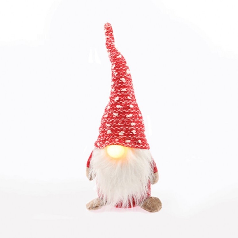 The Christmas Decorative Dwarf With Led Lighting X1311611 is ideal for decorating tabletop surfaces, as well as for the area under the tree or on the fireplace. It is a cute dwarf with fabric clothes in festive shades. It has a LED light on its nose for an even more playful mood. The illuminated nose emits warm white light and operates with 2 CR2032 batteries, which are not included in the package. The lighting is steady and has an On/Off switch. Characteristics: Power: 0.04W Light Color: Warm White Number of bulbs: 1 mini LED Characteristics for 1 LED bulb: 3V/ 0.04W Waterproof rating: IP20 Dimensions: 10x8x33 cm Material: Fabric