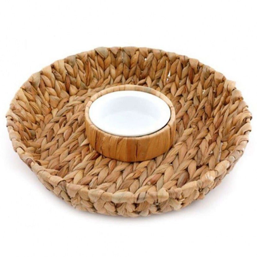The Decorative Disk With Bowl 014.NI0958 has a high aesthetic design that will upgrade your space. It is made of woven hyacinth and has a ceramic bowl inside. Make it yours now with a click on designdrops and you will love it. Quality: