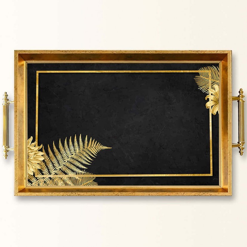 Glass Serving Tray 244KNG1457 50x29x3,5cm Gold-Black Aberto Design