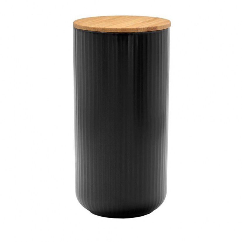 Το Δοχείο Αποθήκευσης Ripple 030037 είναι ένα κομψό και πρακτικό αντικείμενο που μπορεί να χρησιμοποιηθεί για να αποθηκεύετε διάφορα αντικείμενα στο μπάνιο ή στην κρεβατοκάμαρά σας. Κατασκευάζεται από πορσελάνη και διαθέτει σαγρέ υφή. Το καπάκι του από ξύλο μπαμπού απογειώνει το design του.