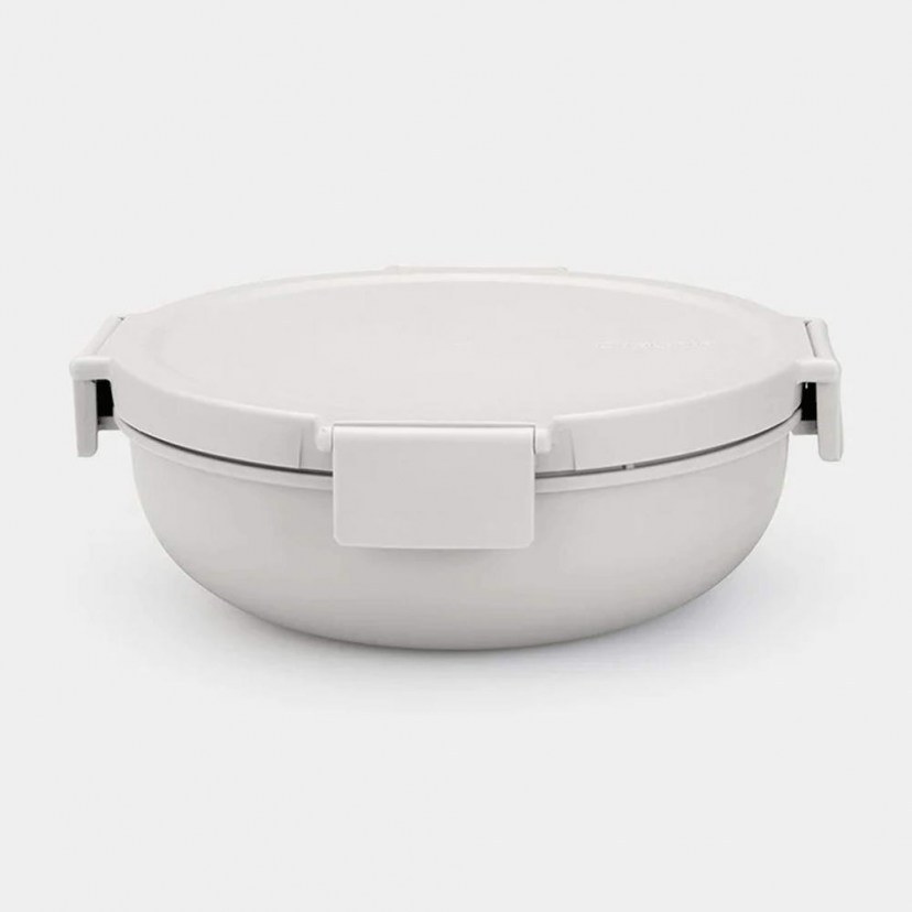 The Make & Take Food Container with Dividers is made of high-quality plastic that is BPA-free, making it durable and resistant to time and use. It is also 100% recyclable. It is an ergonomic and spacious container that features a lid with clips for easy and airtight closure. It has an insert with three compartments and a small container for dressing or sauce, allowing you to have all the necessary items with you to enjoy your favorite salad in its best version, as well as to have snacks, nuts, cut fruits, etc. It is dishwasher safe and safe for use in the microwave. Capacity: 1300 ml.