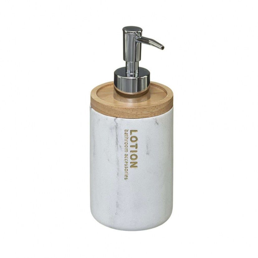 Toilet Soap Dispenser Marble 07.160939 is a modern functional choice for your bathroom! It is a beautiful dispenser made of polyresin with a marble effect, which perfectly harmonizes with the bamboo detail. It can be yours easily and affordably with a simple click on designdrops! Quality: - Polyresin