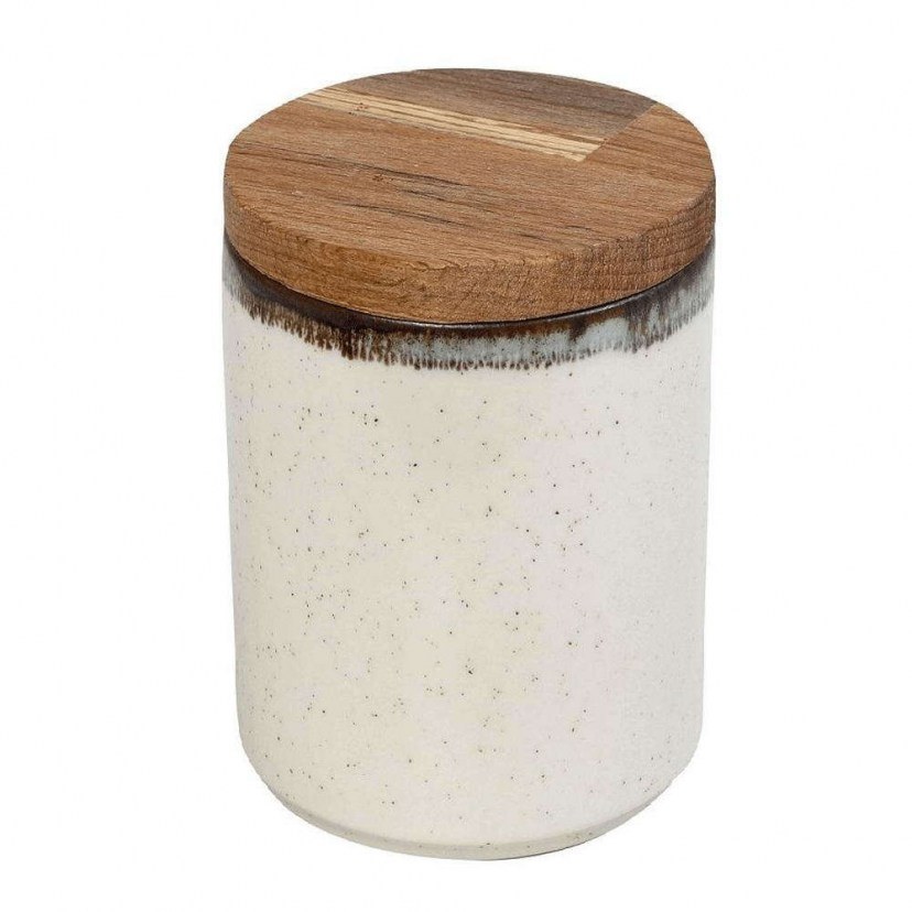 The Container With Lid Essentials OWP131K6 is ideal for storing sugar, coffee, and other dry foods. It is made of stoneware with a glazed finish, making it durable over time and use. It has a wooden lid in a natural shade, which keeps the contents fresh and secure. It is suitable for dishwasher and microwave use. Ideal for professional use. Capacity: 410 ml. Available in two beautiful shades, so you can choose your favorite! Quality: - Stoneware & Wood Dimensions: - 1 Container: Diameter: 8 cm, Height: 12 cm