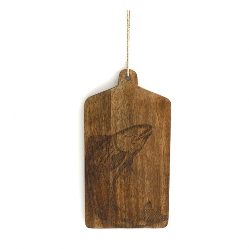 The Fish Cutting Surface 014.KG3041 is a special choice, ideal for those of you who avoid the classic and trivial. This is a cutting surface that stands out for its quality mango wood construction, but also for its ergonomic design with its practical handle and large surface. But what makes it unique is the playful design with the fish on the surface. Yours with a simple click!