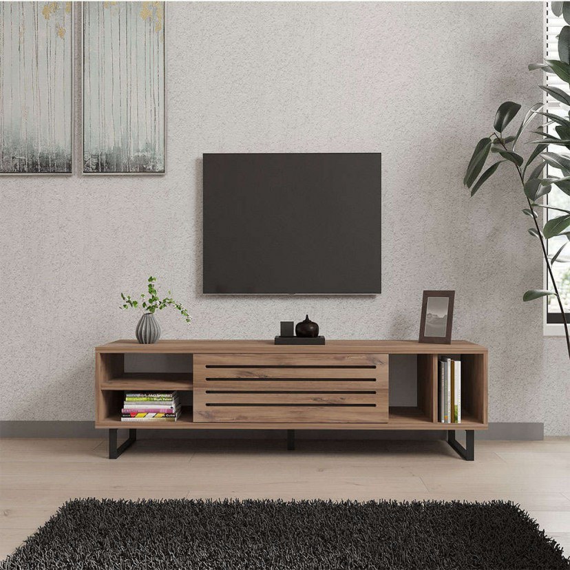 The perfect combination of style and functionality with the 835PUQ3077 TV Stand. This elegant piece of furniture, made of durable chipboard with 100% melamine coating, will add a touch of elegance to your living room. Its sleek lines make it easy to match any decor style, while the large storage areas give you plenty of space to organize your favorite books, magazines, appliances and decorations. Its durable construction ensures that you will enjoy this piece of furniture for many years. Thanks to its easy maintenance and modern design, it is the ideal choice to refresh your space. The product is delivered unordered.