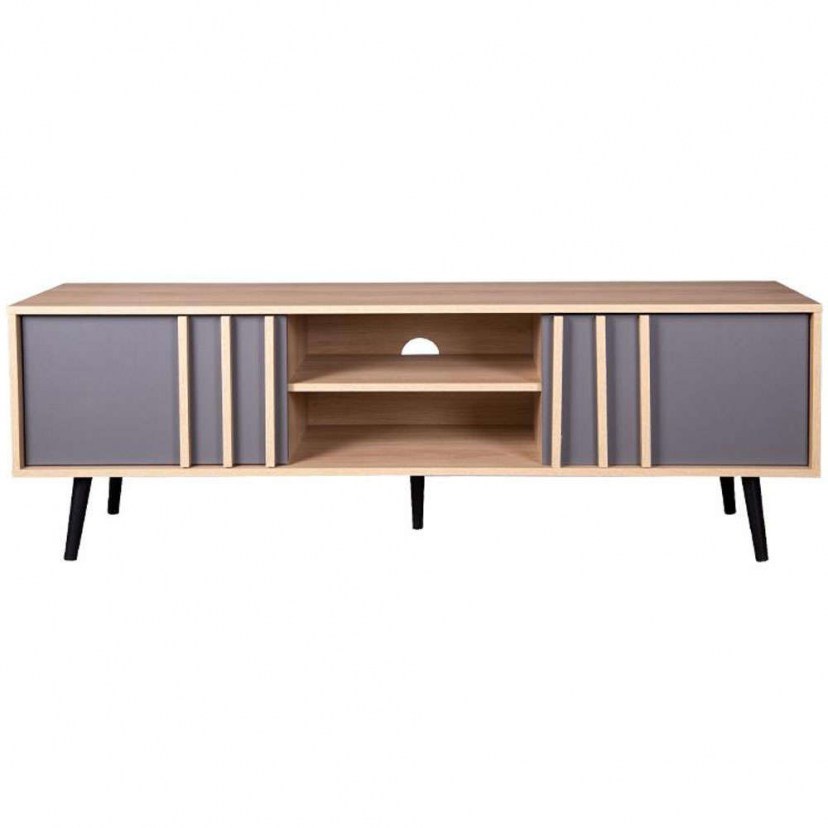 The TV Stand Industry 271-122-050 is a stylish piece of furniture that can be harmonized in any modern living room. It features two spacious cabinets and two shelves to store various items and electronic devices. It is made of wood and has a wonderful color combination. The product is delivered unassembled with detailed assembly instructions.