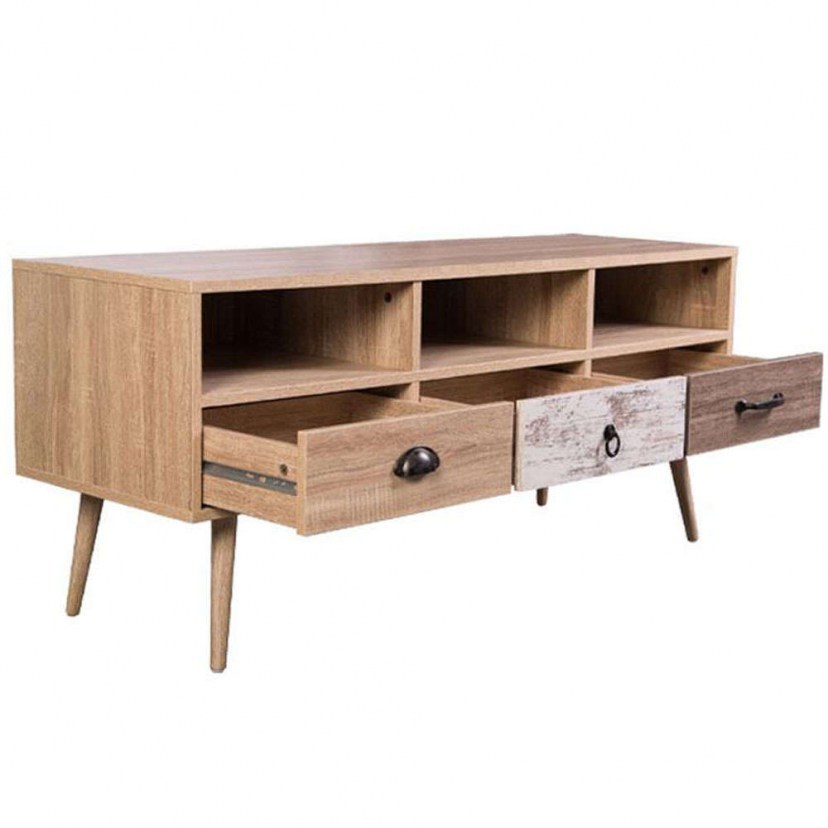 The Lounge 271-123-056 TV Stand is a high-quality piece of furniture that can be yours at an extremely affordable price. It features a modern design that will refresh the decor of your space. It has three spacious drawers and three shelves for open and closed storage of items. Its legs are made of solid pine wood. The product is delivered unassembled, in factory packaging with detailed assembly instructions.