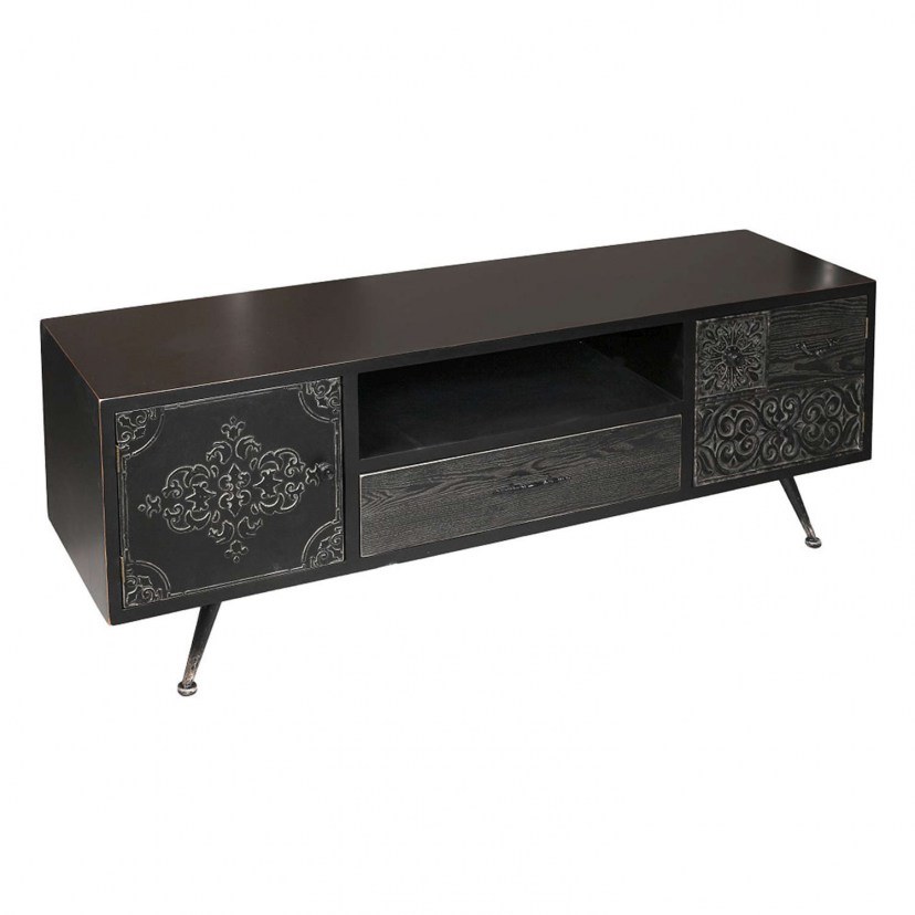 The SAZ213 TV Stand will impress even the most sophisticated tastes, thanks to its exquisite design and amazing construction. It is made of wood and features intricate relief designs on the cabinet and drawers. It has a large surface and a shelf for placing electronic devices and decorations. It has one cabinet and four small drawers for storing various small items. The product is delivered unassembled. Quality: Wood Dimensions: 1 TV Stand: Length: 150 cm, Width: 40 cm, Height: 55.5 cm