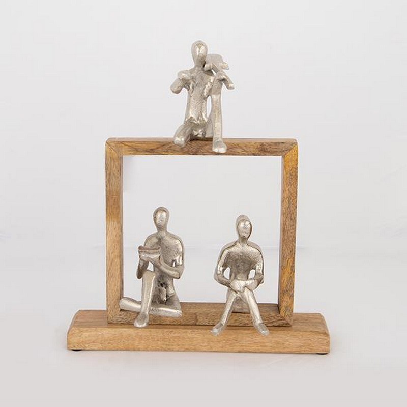 The Decorative Table Figures On Wooden Base 752-27120 was designed to make the decoration of your space more special. These are three human figures made of metal in a wooden frame. Quality construction materials combine in a wonderful way.