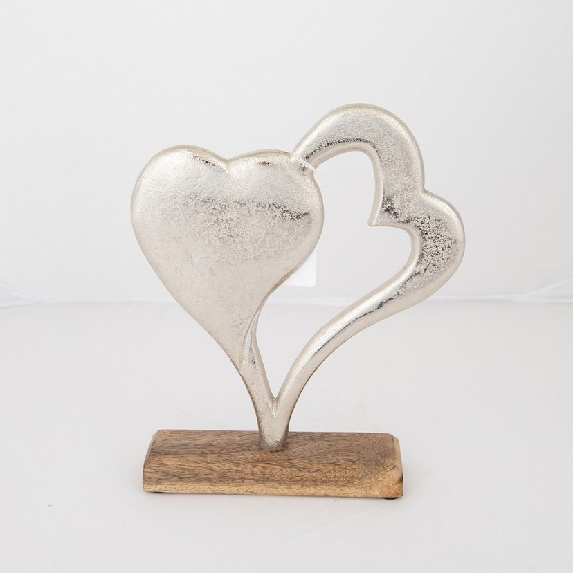 With the Hearts Table Decoration on a Wooden Base 752-28556 you will be able to make the decoration of your space warmer and more romantic. It consists of two beautiful metal hearts on a wooden base. You can also offer it as a gift to a loved one.