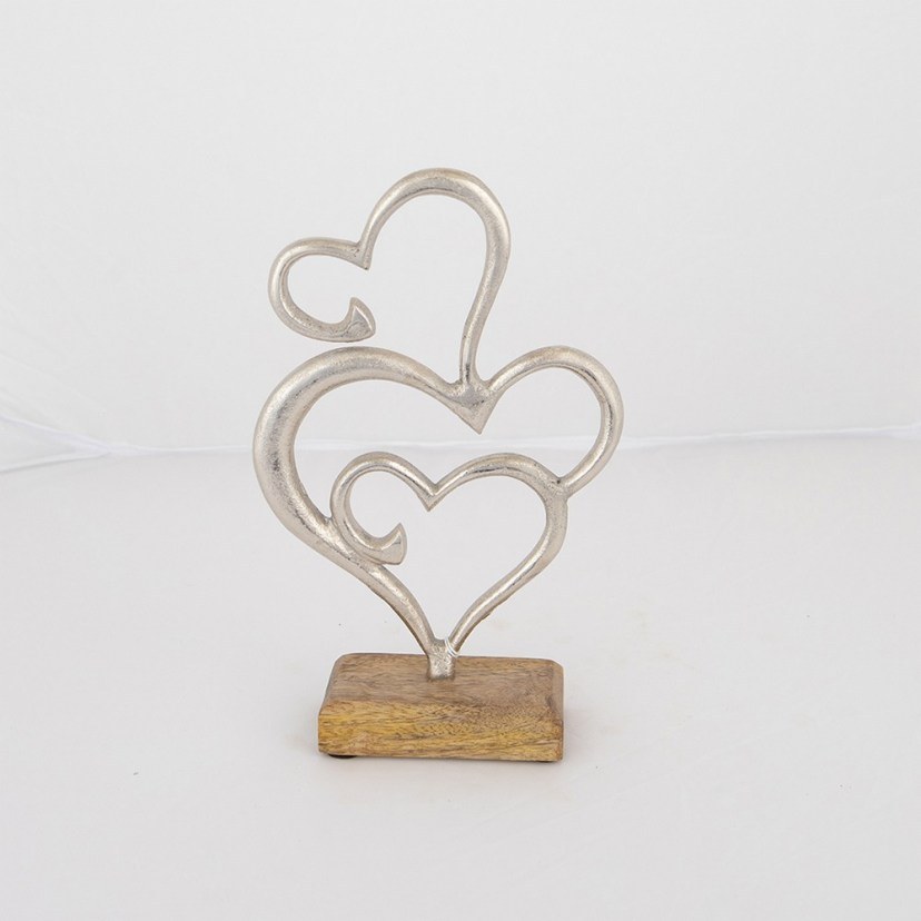 Are you looking for decorative items that will make your decoration sweeter and more romantic? The Hearts On Wooden Base Table Decoration 752-28559 is what you need. It consists of three beautiful metal hearts on a wooden base.