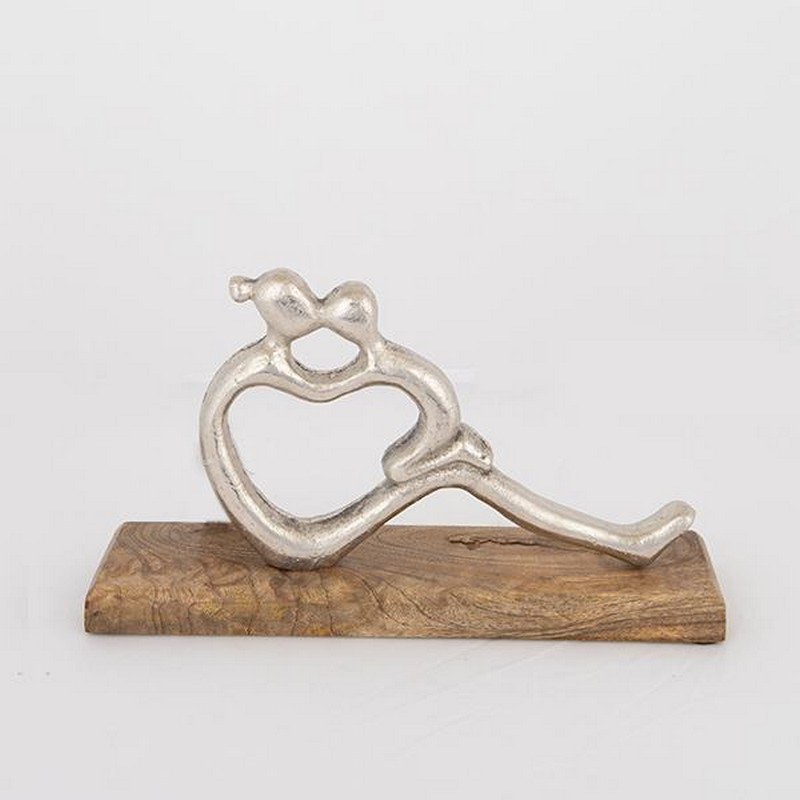 The Desktop Decorative Couple In Wooden Heart 752-27119 is an ode to love. These are two metal figures that with their bodies create a beautiful heart and are on a wooden base. Place it in your space and it will attract attention!