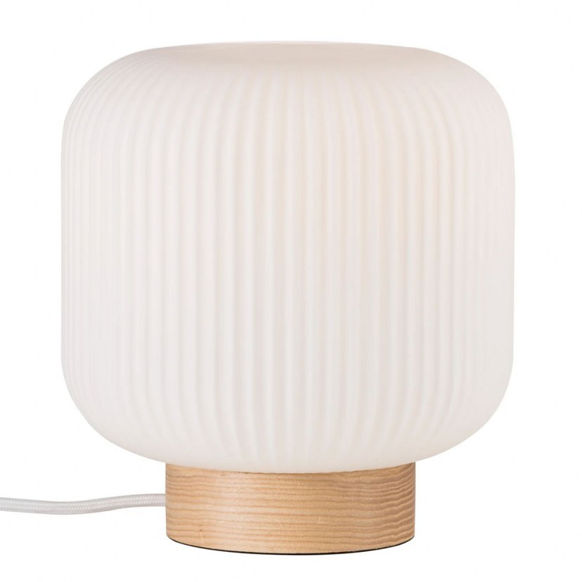 The Milford Table Lamp is a decorative series, where the white opal glass gives a very unique expression to the final aesthetic result. The combination of organic forms and the ribbed, transparent surface creates elegance and illuminates the room with a soft and warm light. The glass in this lamp is mouth-blown and individually handcrafted. Due to this unique process, air bubbles may appear in the glass and the thickness of the glass may also vary. It requires an E27 MAX 40W bulb, which is not included in the packaging. Quality: Metal & Glass Dimensions: 1 Lamp: Diameter: 20 cm, Height: 21.7 cm