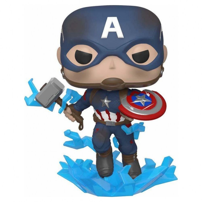 Relive the epic battle of Avengers: Endgame with the Marvel: Avengers Endgame - Captain America Mjolnir #573 45137 Figure. Captain America, holding his broken shield and Mjolnir, is captured in this dynamic Pop! that brings the tension and excitement of the film to your collection. You don't need time travel to relive the moment, just add it to your Marvel collection!