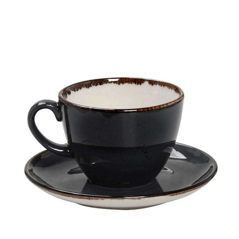 Cup Porcelain With Plate Terra TLG111K6 220ml Grey Espiel
