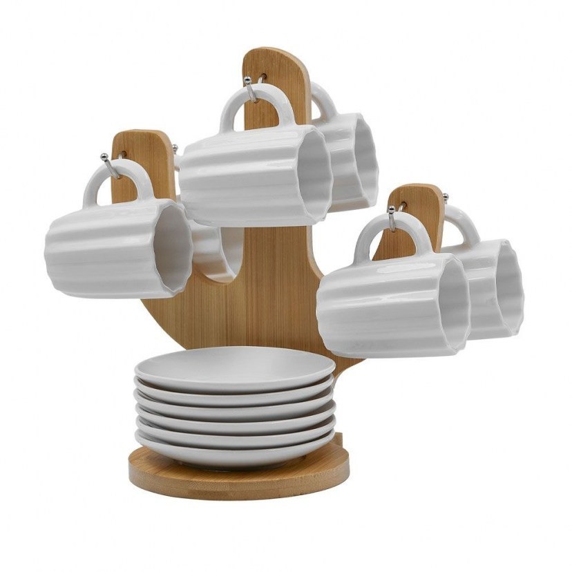 Το ΣετΦλυτζάνια Espresso Με Πιατάκια & Βάση Cactus (13Τμχ) 030000 αποτελεί εξαίσια επιλογή για τους λάτρεις των ροφημάτων! Κατασκευασμένo από πορσελάνη, συνδυάζει την ελαφρότητα και την ανθεκτικότητα με τη μοναδική αίσθηση πολυτέλειας. Το σετ περιλαμβάνει έξι φλυτζάνια espresso 80 ml, έξι πιατάκια και μία βάση από bamboo σε σχήμα κάκτου. Επιτρέπεται η χρήση πλυντηρίου πιάτων μόνο για τα πορσελάνινα μέρη.