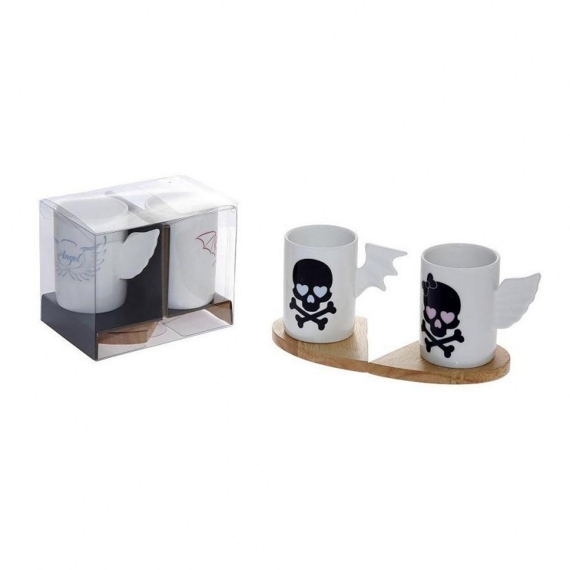 The Scull DEV106 Espresso Cup Set is impressive and original, making it an excellent choice as a gift for a loved one! It consists of two porcelain cups with a modern design and unique handles. They come with two bamboo coasters. Capacity: 90ml. Quality: Porcelain & Bamboo. Dimensions: 1 Set: 2 Cups: Diameter: 4.5 cm, Height: 6.5 cm.