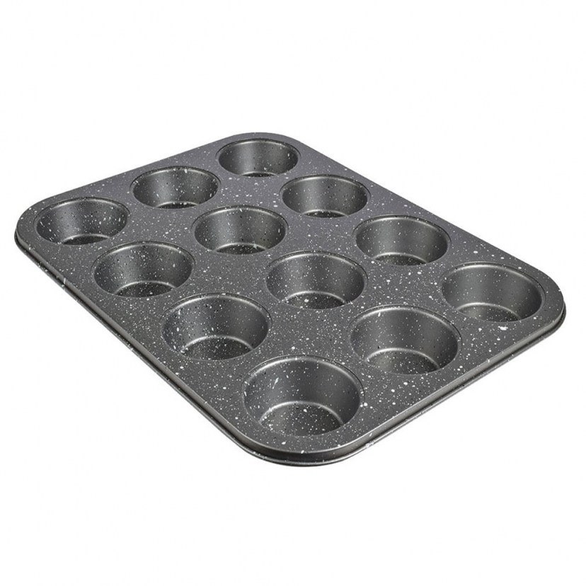 Cupcakes/Muffins form 01-5276, extremely practical, thanks to its 12 positions, to easily and quickly bake your creations! It has a triple non-stick coating, made of marble, and thanks to the uniform heat distribution it offers, it guarantees perfect results. Its construction is made of metal material! Quality:
