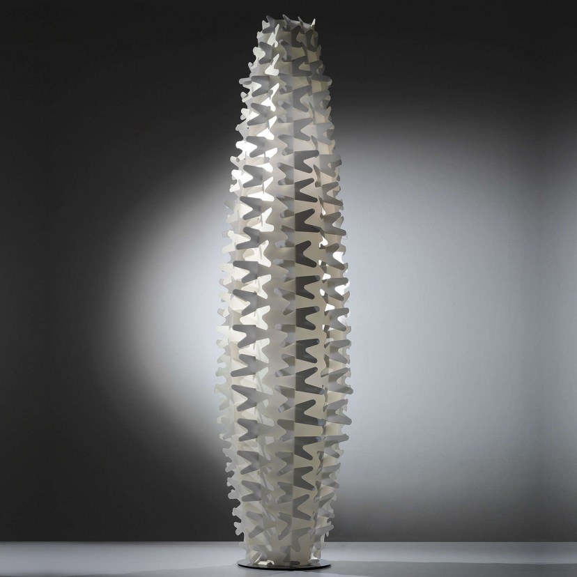 The Cactus Floor Lamp has the exceptional ability to adapt to any space while remaining true to its original inspiration. Its intense virtuality is due to the combination of geometry and innovation of the materials used for its construction in the SLAMP studio by the renowned designer Adriano Rachele. It emits an irresistible brightness thanks to the exemplary prismatic reflections that give a unique decor and personality to any space it is placed in. It requires 2 E27 LED 10W bulbs - not included. Quality: Opaflex® / Steel. Dimensions: 1 floor lamp diameter: 40cm, H: 155cm.