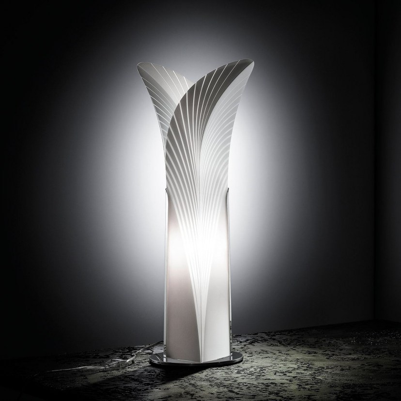 A few kilometers from the Moroccan coast on the Atlantic Ocean, the sunlight bathes the palm trees that cover the island of Las Palmas. This idyllic landscape brought life to the eponymous collection, transforming a two-dimensional Opalflex® sheet into three dimensions that will bring a monochrome, soft summer breeze to any interior space with the signature of the well-known designer Jonas Clementoni. Get the unique Las Palmas Floor Lamp with just one click! Requires 2 E27 LED 10W bulbs - not included. Quality: Opalflex® / Polycarbonate Dimensions: 1 floor lamp M: 44.5cm, W: 40cm, H: 118cm.