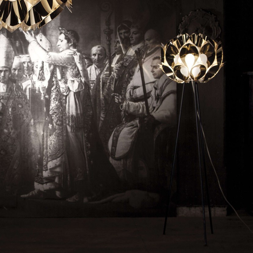 In a land embraced by the sun, nature and beautiful colors, through the technical superiority and experience of SLAMP, combined with the design intelligence of Zanini de Zanine, brings to life exceptionally expressive pieces, including the Flora floor lamp, a unique piece inspired by the Monstera Deliciosa plant. Sixty petals surround a satin sphere illuminated by 3 LED bulbs. The glossy finish of the petals is achieved through an innovative aluminum exhaust system that creates a unique play with light, reminiscent of the sun at its zenith. Requires 3 E27 10W bulbs - not included. Quality: Goldflex®/ Steelflex® Pewterflex® / Copperflex® / Methacrylate. Dimensions: 1 floor lamp diameter: 50cm, H: 170cm.