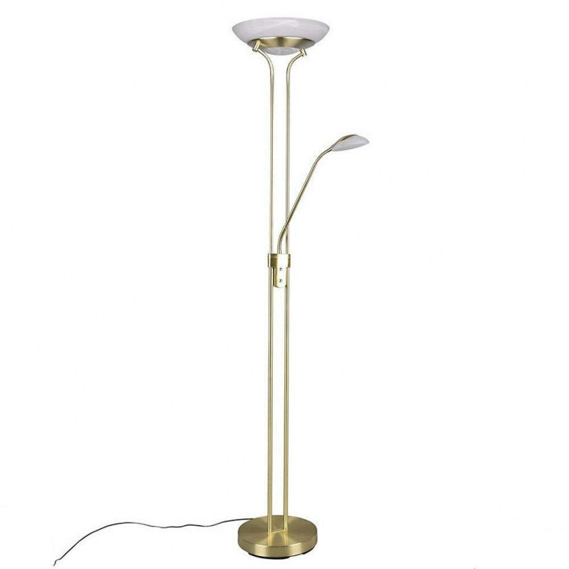 The Orson R40073508 Floor Lamp features two light sources, one with a power of 27W and a luminous flux of 2700 lumens, and one with a power of 4.5W and a luminous flux of 450 lumens. It emits warm white light (3000K) and is dimmable. It has a dual switch, allowing you to control each light source independently. It has a metal frame and unique lampshades made of alabaster glass.